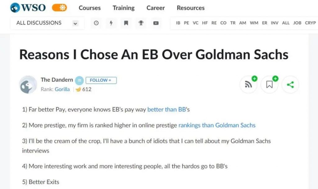 录取精品投行比九大投行难了一个档次