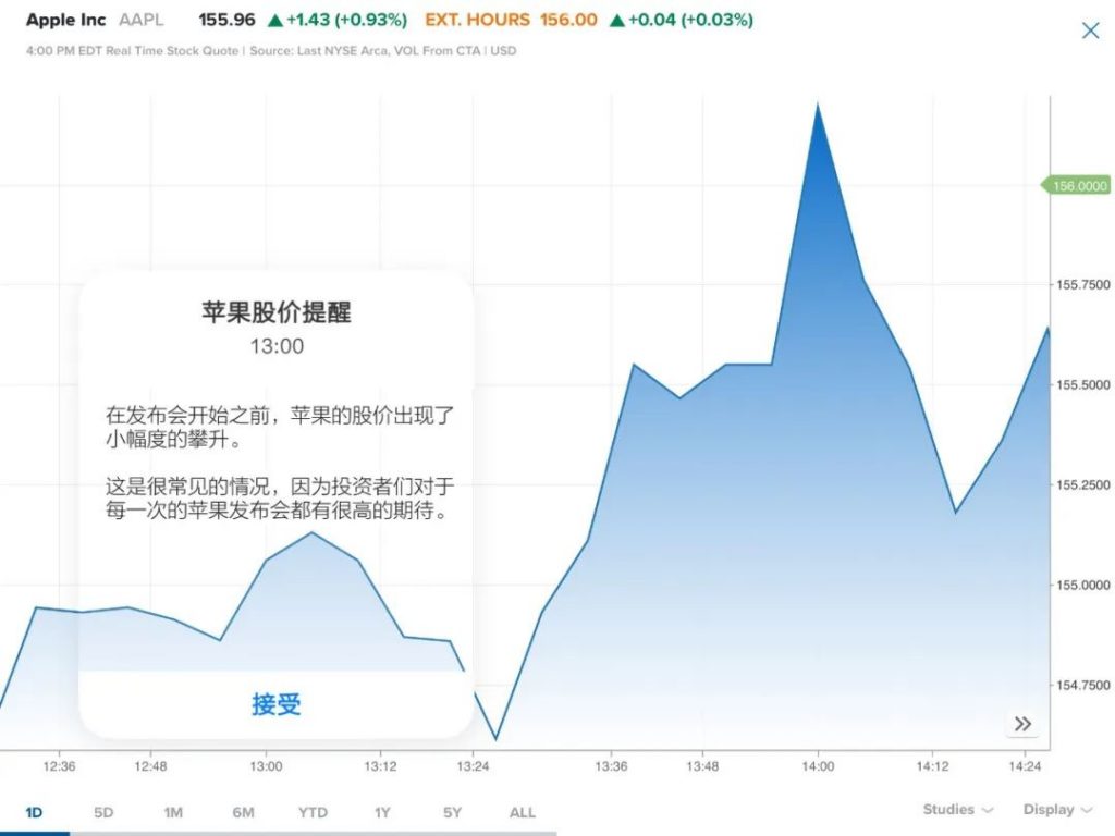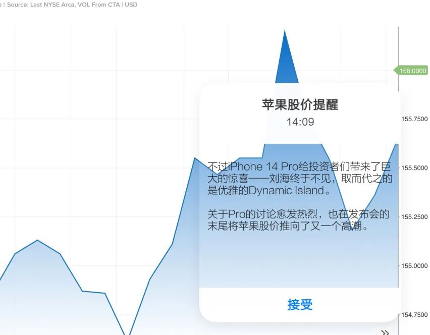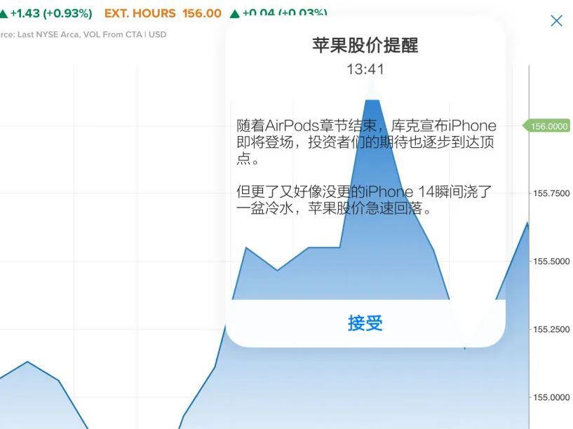 随着一个又一个新产品、新功能的介绍,有的被认为鸡肋、有的又被认为是革新,心情很是跌宕起伏了。而发布会期间,同样跌宕起伏的是苹果的股价:每当宣布一款产品,苹果股价的走势就如心动图一般“灵动”起来了。
